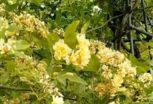 黄木香花 Rehd.)是蔷薇科、蔷薇属植物,为木香花的变型品种,攀缘小灌木,高可达6米。小叶3-5枚,稀7枚,小叶片椭圆形或长圆状披针形,先端急尖或稍钝,基部近圆形或宽楔形,边缘有紧贴细锯齿。花小型,…全部>>