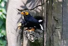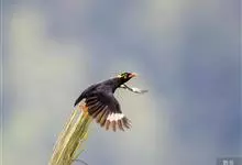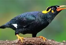 金冠树八哥为椋鸟科树八哥属的鸟类。体长约23厘米,闪辉黑色。特征为具翼斑及颏黄色,脸颊裸露皮肤粉黄色。分布于印度、缅甸、泰国以及中国大陆的云南、广东等地。…全部>>