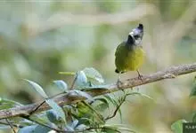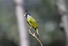 凤头雀嘴鹎:属小型鸟类,体长18-22厘米。嘴粗短、呈象牙色或乳黄色,前额和脸灰色,头顶黑色,有一朝前竖立的黑色羽冠。上体橄榄绿色,下体黄绿色,尾羽黄绿色具宽阔的黑褐色端斑。…全部>>