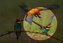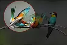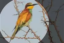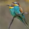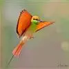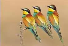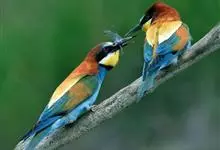 栗喉蜂虎是蜂虎科蜂虎属的鸟类。有热带鸟类羽毛艳丽的特征:喉部是栗红色的,黑色的过眼纹,翅膀和背部是绿色的,尾翼是蓝色的,飞行时翅膀下面的羽毛是橙黄色的,在阳光的照射下,它们全身闪烁着金属般的艳丽光泽,…全部>>