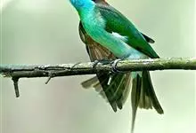 蓝喉蜂是蜂虎科蜂虎属鸟类。体长26-28厘米,嘴长而弯曲,有明显细长的中央尾羽。头部、颈部和背部为巧克力色,有黑色眼纹。喉部、腰部和尾羽为蓝色。腹部和两翼为绿色。幼鸟外观似成鸟,头部、颈部和背部为绿色,…全部>>