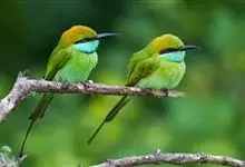 绿喉蜂虎是佛法僧目、蜂虎科的小型鸟类,共有9个亚种。身长22-25厘米,翼展29-30厘米,体重15-20克。喉绿色,额部、头顶至上背为锈红色,其余上体均为亮绿色。中央尾羽延长且端段狭细,…全部>>