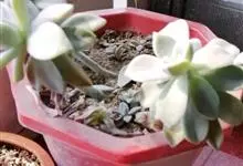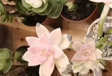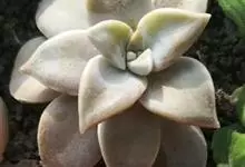胧月 E.Walther)是景天科,风车草属多肉植物,常绿蔓生亚灌木,叶肥厚无柄,灰蓝色,阳光充足时呈粉红色,叶片枝顶簇生成莲座状,乳白色,花冠5裂,上有紫红色斑点,雄蕊两轮排列,花药鲜红色,…全部>>