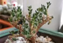 姬红小松是番杏科仙宝属植物,多年生肉质矮灌木,株高7-12厘米。灰白色,茎干膨大、肥厚且多汁。分枝性强。绿色纺锤形小叶对生,小叶长0.8-2厘米。叶端丛生白色短细毛。小花桃红色,着生于枝条顶部。…全部>>