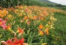 重瓣萱草 L. var. kwanso Regel),百合科萱草属植物。根近肉质,中下部有纺锤状膨大;花桔黄色,花被裂片多数,雌雄蕊发育不全。花被管较粗短,长2-3厘米;内花被裂片宽2-3厘米。…全部>>