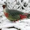 血雉雉科血雉属鸟类,别名血鸡、松花鸡,血雉的雄鸟大覆羽、尾下覆羽、尾上覆羽、脚、头侧、腊膜为红色,故称血雉。其别名甚多,各地皆异。在甘肃,因其胸侧和翅上覆羽沾绿,被称为“绿鸡”;因其羽毛形似柳叶,…全部>>