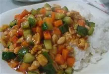 宫保鸡丁盖饭是一道简单的家常饭,主料是鸡胸肉、青笋、胡萝卜、大蒜、葱、干辣椒、盐、味精、胡椒粉、糖、醋、老抽、料酒、淀粉,…全部>>