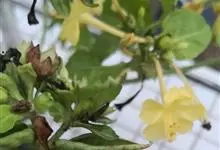 即紫茉莉,英文名:Four-o'clock,Marvel of Peru,为紫茉莉科、紫茉莉属多年生草本植物,一年生栽培。株高50~80cm。根粗壮,茎多分枝而散生。叶对生,卵形或心脏形。花数朵簇生…全部>>