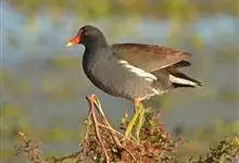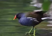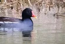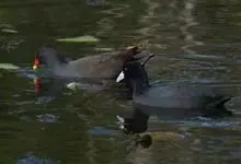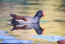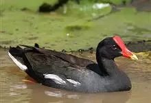 黑水鸡:是鹤形目、秧鸡科的鸟类,共有12个亚种。中型涉禽,体长24-35厘米。嘴长度适中,鼻孔狭长;头具额甲,后缘圆钝;嘴和额甲色彩鲜艳。翅圆形,第2枚初级飞羽最长,或第2枚和第3枚初级飞羽等长,…全部>>