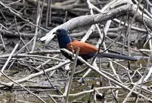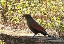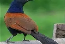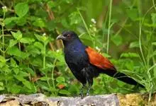 褐翅鸦鹃,是鹃形目鸦鹃科鸦鹃属的鸟类。褐翅鸦鹃的身体为黑色;头颈和胸带蓝紫色金属光泽并具黑亮的羽干纹,下胸至腹部泛金属绿光泽;两翼和肩部为棕栗色,外侧飞羽具暗色羽端,尾羽闪铜绿色光泽;虹膜赤红色,…全部>>