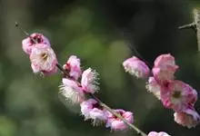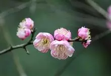 宫粉梅 Rehd.)是蔷薇科、李属植物,梅花品系中真梅系直枝梅类宫粉型,其花复瓣至重瓣,呈或深或浅的红色。落叶乔木,高达10米。树干褐紫色,有纵驳纹,小枝细而无毛,多为绿色。叶广卵形至卵形,…全部>>