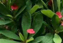 铁海棠为大戟科大戟属蔓生灌木植物;茎多分枝,具纵棱,呈旋转状;叶互生,通常集中于嫩枝上;每个花序基部边缘具微小的红色尖头;苞叶先端圆且具小尖头,无柄,上面鲜红色,下面淡红色;苞片丝状;子房光滑无毛,…全部>>