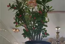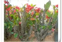 虎刺梅:别称铁海棠,是蔓生灌木植物。茎多分枝,长60-100厘米,直径5-10毫米,具纵棱,密生硬而尖的锥状刺,刺长1-1.5厘米,直径0.5-1.0 毫米,常呈3-5列排列于棱脊上,呈旋转。叶互生…全部>>