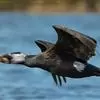 普通鸬鹚是属于鲣鸟目鸬鹚科鸬鹚属鸟类,又名水老鸦、鱼鹰、乌鬼、黑鱼郎等。体长720—900毫米,雌雄同型。通体黑色,有绿褐色金属光泽;喙厚重,喙基和喉囊橙黄色,脸颊及喉白色;夏羽颈及头饰具白色丝状羽,…全部>>