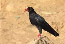 红嘴山鸦,是脊索动物门鸟纲雀形目鸦科鸟类。红嘴山鸦的成鸟通体羽毛纯黑色具有蓝色金属光泽,翼和尾泛有蓝绿色金属光泽;虹膜暗褐色,喙较为尖细,并且呈镰状下弯,喙和脚朱红色。…全部>>
