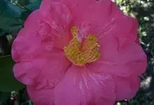 滇山茶:灌木至小乔木,有时高达15米,嫩枝无毛。叶阔椭圆形,上面干后深绿色,发亮,下面深褐色,无毛,侧脉6-7对,边缘有细锯齿。花顶生,红色,直径10厘米,无柄;苞片及萼片10-11片,花瓣红色,…全部>>