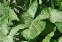 合果芋是天南星科,合果芋属多年生常绿草本植物,合果芋的茎节具气生根,攀附他物生长。叶片呈两型性,箭形或戟形;叶基裂片两侧常着生小型耳状叶片。佛焰苞浅绿或黄色。合果芋一般不易开花。…全部>>