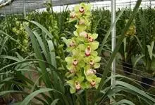大花蕙兰,兰科兰属的常绿附生草本植物。大花蕙兰的假鳞茎椭圆形,粗大;根多为肉质圆柱状,粗壮肥大,大都呈灰白色;叶宽而长,下垂,浅绿色有光泽;花亭斜生,稍弯曲;花大,色泽艳丽,…全部>>