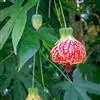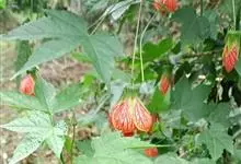红萼苘麻是锦葵科、苘麻属常绿软木质灌木,叶绿色,长5-10厘米,心形,叶端尖,叶缘有钝锯齿,有时分裂,有细细的叶柄;叶互生,掌状叶脉;花单生于叶腋,具长梗,下垂;花萼红色,半套着大约4厘米长的花瓣,…全部>>