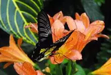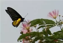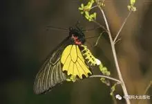 金裳凤蝶是凤蝶科、裳凤蝶属的动物。金裳凤蝶身体呈黑色,头、颈和胸侧有红毛,腹部有黑黄两色相间条纹,雄蝶前翅黑色,具黑天鹅绒光泽,各脉两侧灰白色,后翅金黄色,各室外缘有等腰三角形黑斑1枚,斑内侧有晕,…全部>>