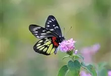 报喜斑粉蝶是粉蝶科斑粉蝶属的一种动物,又名红肩粉蝶、藤粉蝶等。幼虫群集性很强,从同一卵块孵化出的幼虫,幼龄期全部群集在一起取食,高龄幼虫常分散成小群。幼虫群集危害叶片,造成秃枝,严重者可将树吃成光杆,…全部>>
