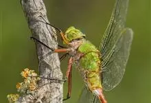 碧伟蜓是蜻蜓目蜓科伟蜓属昆虫,别名有绿蜻蜓。黄绿色,头面黄色,额上有一褐色横带,胸部被黄绿色细毛;翅透明,略带黄色,腹部背面褐色,两侧有浅斑,足基节、转节、腿节黄色,…全部>>