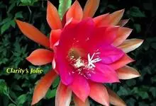 令箭荷花,为仙人掌科令箭荷花属多年生常青附生类植物,因其茎扁平呈披针形,形似令箭,花似睡莲,故名令箭荷花。其为群生灌木状,高约50~100厘米。喜光照和通风良好的环境,…全部>>