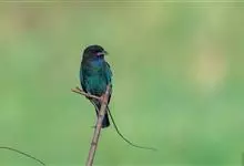 三宝鸟,是佛法僧目佛法僧科三宝鸟属中小型攀禽。成鸟通体为富有光泽的墨蓝绿色,头大而头顶扁平;头部色深近紫黑色,上体至尾泛有铜绿光泽;两翼有幽蓝金属光,初级飞羽黑褐色;羽基淡石青色,形成大块淡蓝,…全部>>