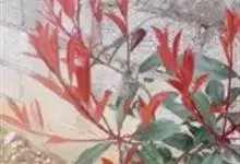红叶石楠 是蔷薇科,石楠属杂交种,为常绿小乔木或灌木,乔木高可达5米、灌木高可达2米。叶片革质,长圆形至倒卵状、披针形,叶端渐尖,叶基楔形,叶缘有带腺的锯齿,花多而密,复伞房花序,花白色,梨果黄红色,…全部>>
