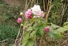 木芙蓉,锦葵科木槿属落叶灌木或小乔木。小枝上有细绒毛;叶片为卵状心形,托叶为披针形,常早落;花单生,花萼为钟形,花冠初为白色或淡红色,后逐渐变为深红色;果实为扁球形,有淡黄色的毛附着。花期8到10月。…全部>>