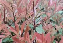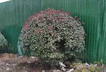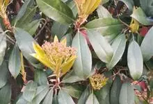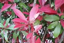 石楠 Kalkman),是蔷薇科石楠属的常绿乔木,高5~12米,株型紧凑,树冠圆球形。树枝为褐灰色;鳞片为褐色,没有毛;叶片革质,长椭圆至侧卵状椭圆形,有锯齿,新叶红色光亮。复伞房花序,白色小花,…全部>>