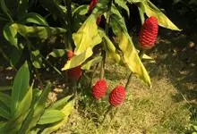 红球姜 Roscoe ex Sm.)是姜科姜属的多年生草木植物。植株高达2米,根茎块状,内部淡黄色,叶披针形或长圆状披针形,无毛或下面被疏长柔毛,无柄或具短柄,苞片覆瓦状排列,初淡绿色,后红色。…全部>>