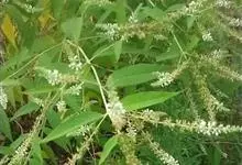白背枫,马钱科醉鱼草属植物,常绿小灌木,高1-1.5米。嫩枝条四棱形,老枝条圆柱形;叶对生狭椭圆形或披针形,绿色无毛;总状花序窄而长,花冠芳香白色或淡绿色;蒴果椭圆状;种子灰褐色;花期1-10月,…全部>>
