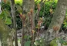 水同木是桑科榕属植物,常绿小乔木,树皮黑褐色,枝粗糙,叶互生,纸质,倒卵形至长圆形;基生侧脉短,侧脉6-9对;叶柄长1.5-4厘米;托叶卵状披针形,长约1.7厘米。榕果簇生于老干发出的瘤状枝上,近球形,…全部>>