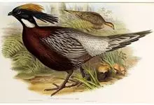 血雉雉科血雉属鸟类,别名血鸡、松花鸡,血雉的雄鸟大覆羽、尾下覆羽、尾上覆羽、脚、头侧、腊膜为红色,故称血雉。其别名甚多,各地皆异。在甘肃,因其胸侧和翅上覆羽沾绿,被称为“绿鸡”;因其羽毛形似柳叶,…全部>>