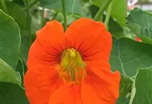 旱金莲是旱金莲科旱金莲属蔓生一年生草本植物。叶互生,叶柄向上扭曲,盾状,叶圆形,具波状浅缺刻,下面疏被毛或有乳点;花黄、紫、桔红或杂色,花托杯状,花瓣为圆形,边缘具缺刻;果实为扁球形;花果期6-10月,…全部>>