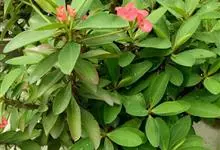 铁海棠为大戟科大戟属蔓生灌木植物;茎多分枝,具纵棱,呈旋转状;叶互生,通常集中于嫩枝上;每个花序基部边缘具微小的红色尖头;苞叶先端圆且具小尖头,无柄,上面鲜红色,下面淡红色;苞片丝状;子房光滑无毛,…全部>>