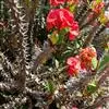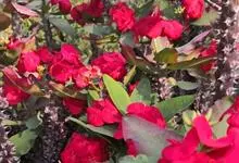 虎刺梅:别称铁海棠,是蔓生灌木植物。茎多分枝,长60-100厘米,直径5-10毫米,具纵棱,密生硬而尖的锥状刺,刺长1-1.5厘米,直径0.5-1.0 毫米,常呈3-5列排列于棱脊上,呈旋转。叶互生…全部>>