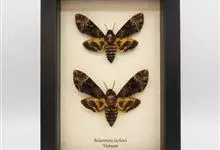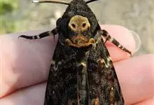 鬼脸天蛾,是鳞翅目天蛾科面形天蛾属动物。成虫翅展100~125毫米,体黑褐色;胸背有骷髅形斑纹;卵圆球形,直径约2毫米,淡黄绿色,表面光滑;老熟幼虫体长70~90毫米,蛹体长约56毫米;前翅为褐色,…全部>>