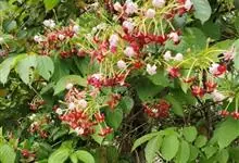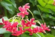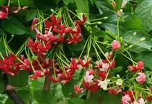 使君子 Jongkind)是使君子科、使君子属攀援灌木,叶对生,椭圆形,两面均被灰白色柔毛。穗状花序,倒挂下垂。花期夏秋。果有五棱,熟时黑色,种子白色。分布于印度、缅甸、菲律宾和中国。喜温润,深根性,…全部>>