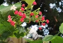 使君子 Jongkind)是使君子科、使君子属攀援灌木,叶对生,椭圆形,两面均被灰白色柔毛。穗状花序,倒挂下垂。花期夏秋。果有五棱,熟时黑色,种子白色。分布于印度、缅甸、菲律宾和中国。喜温润,深根性,…全部>>
