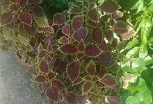 五彩苏 Benth.),是唇形科鞘蕊花属草本植物。五彩苏的茎通常紫色,四棱形,具分枝;叶膜质,通常卵圆形,边缘具圆齿状锯齿或圆齿,色泽多样,有黄、暗红、紫色及绿色;叶柄伸长,…全部>>