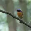 棕腹大仙鹟:体重24-28克,体长15-17厘米,是一种小型的色彩亮丽的鹟。雄鸟上体深蓝,下体棕色,脸黑,额、颈侧小块斑、翼角及腰部亮丽闪辉蓝色。与棕腹仙鹟易混淆,区别在色彩较暗。雌鸟灰褐,…全部>>