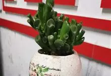 筒叶花月,是景天科青锁龙属的多年生草本植物。植株多分株,灌木状,茎较粗壮,圆柱形,表皮灰褐色;叶片肉质,互生,呈圆筒状,簇生于茎或分枝顶端,叶端呈斜截形,截面为椭圆形;花呈星状,淡白色;花期秋季。…全部>>