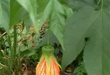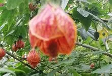 红萼苘麻是锦葵科、苘麻属常绿软木质灌木,叶绿色,长5-10厘米,心形,叶端尖,叶缘有钝锯齿,有时分裂,有细细的叶柄;叶互生,掌状叶脉;花单生于叶腋,具长梗,下垂;花萼红色,半套着大约4厘米长的花瓣,…全部>>
