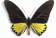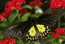 金裳凤蝶是凤蝶科、裳凤蝶属的动物。金裳凤蝶身体呈黑色,头、颈和胸侧有红毛,腹部有黑黄两色相间条纹,雄蝶前翅黑色,具黑天鹅绒光泽,各脉两侧灰白色,后翅金黄色,各室外缘有等腰三角形黑斑1枚,斑内侧有晕,…全部>>