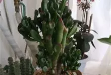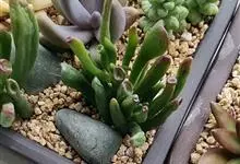 筒叶花月,是景天科青锁龙属的多年生草本植物。植株多分株,灌木状,茎较粗壮,圆柱形,表皮灰褐色;叶片肉质,互生,呈圆筒状,簇生于茎或分枝顶端,叶端呈斜截形,截面为椭圆形;花呈星状,淡白色;花期秋季。…全部>>