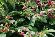 使君子 Jongkind)是使君子科、使君子属攀援灌木,叶对生,椭圆形,两面均被灰白色柔毛。穗状花序,倒挂下垂。花期夏秋。果有五棱,熟时黑色,种子白色。分布于印度、缅甸、菲律宾和中国。喜温润,深根性,…全部>>
