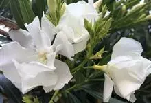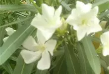 白花夹竹桃是夹竹桃科、夹竹桃属植物夹竹桃的栽培品种。常绿直立大灌木,枝条灰绿色;嫩枝条具稜,被微毛,老时毛脱落。叶3-4枚轮生,下枝为对生,叶面深绿,叶背浅绿色;侧脉纤细平行与中脉成直角;叶柄扁平,…全部>>