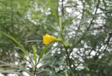 黄花夹竹桃K. Schum.),又名“酒杯花”“柳木子”“黄花状元竹”,是夹竹桃科,黄花夹竹桃属下的常绿乔木植物。高达5m,全株无毛,树皮棕褐色;叶互生,近革质,线形或线状披针形;花大,黄色,具香味,…全部>>